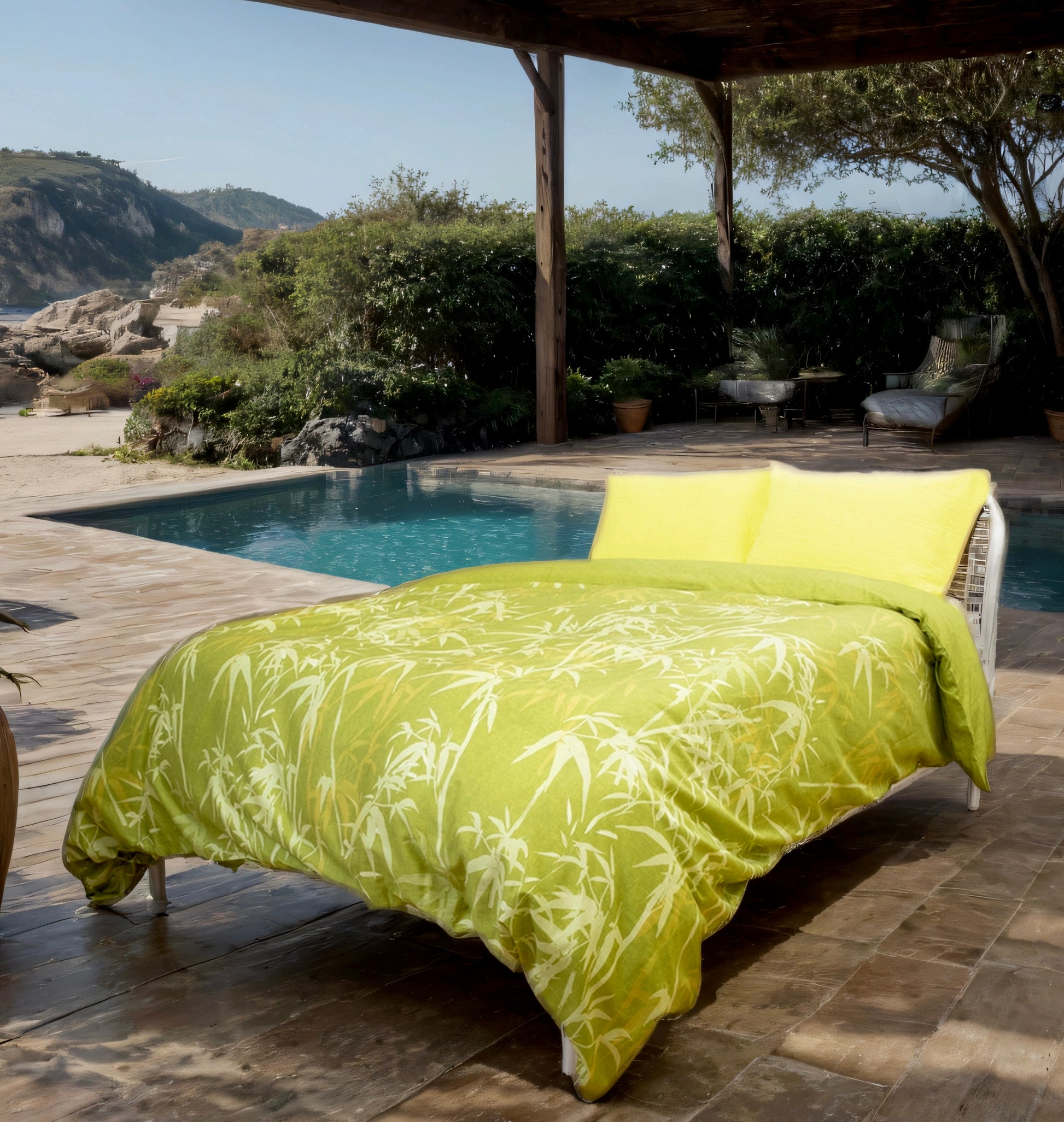 Yezi is a larger scale bamboo design in a color palette derived from bamboo near and in waterways in Asia
